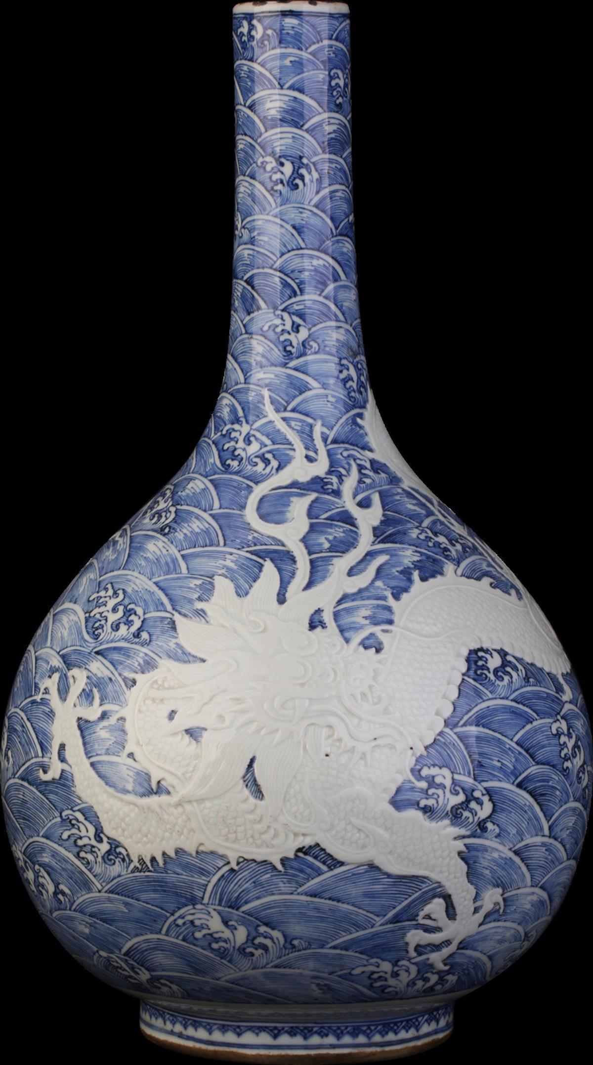 武汉博物馆所藏的青花海水白釉龙纹胆瓶